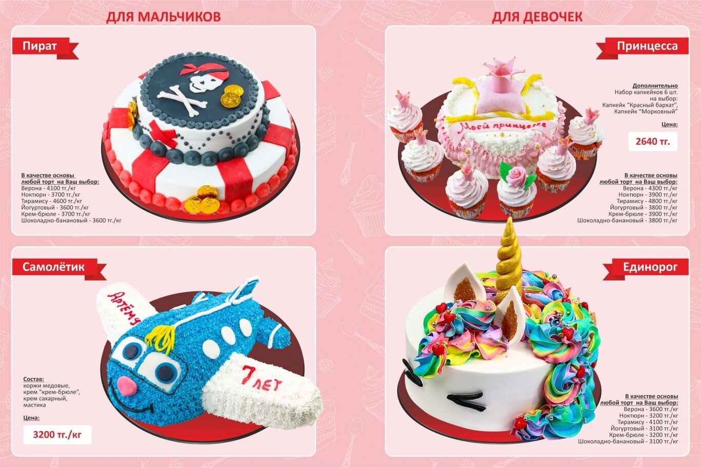 С условиями заказа и разнообразием тортов в специальном каталоге можно ознакомиться на кассе либо в разделе "Торты на заказ". Наши кондитеры с удовольствием сделают специальное детское оформление и поздравительную надпись для именинника.
