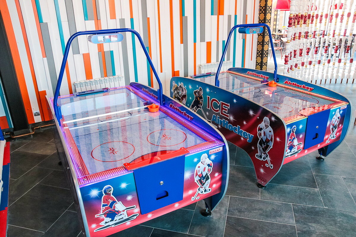 В детский игровой комплекс кафе допускаются дети, рост которых не превышает 120 см, но для детей постарше, здесь мы предлагаем поиграть в аэрохоккей.