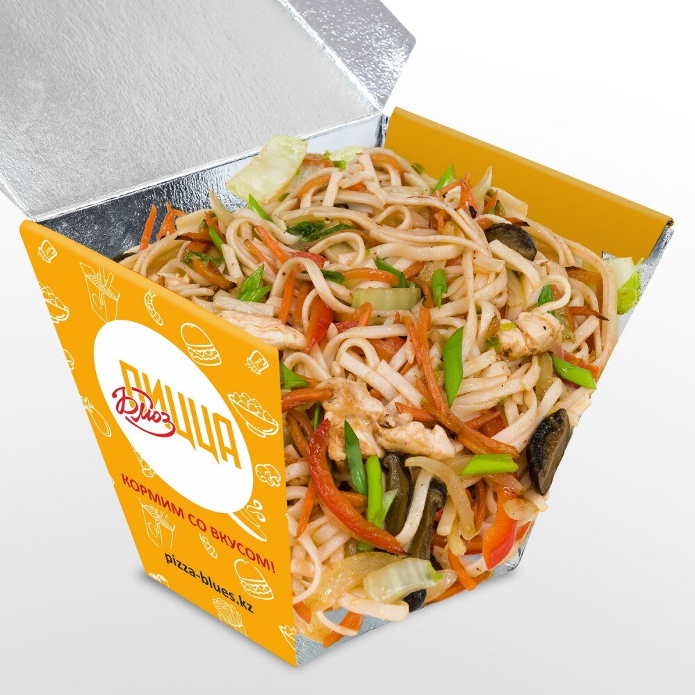 Лапша удон, индейка, грибы, капуста пекин., лук, морковь, перец болгар., перец чили, соус кисло-слад., зел. лук