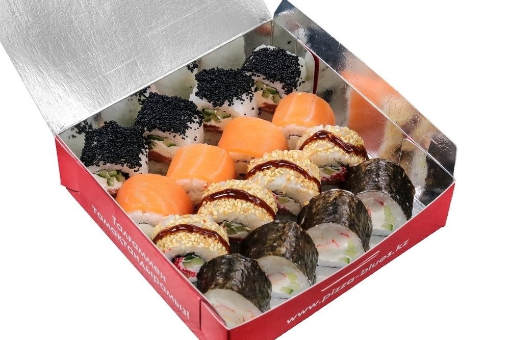 Роллы "Киото", "Тобико Блэк", "Пирамида", "Аляска", васаби, имбирь, сооевый соус (16 шт)