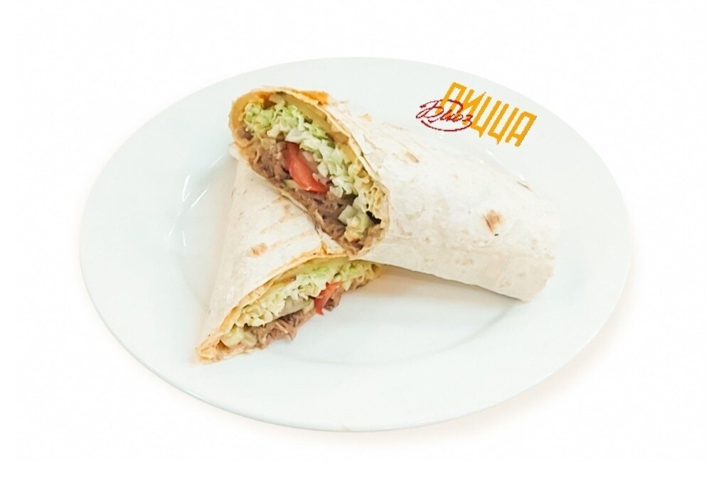 лаваш, мясо на выбор, помидоры, огурцы свежие, огурцы маринованные, картофель, красный лук, пекинская капуста, чеснок, соевый соус, аджика, соус ранч