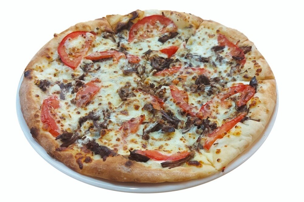 рваная говядина, помидоры, сыр, белый соус