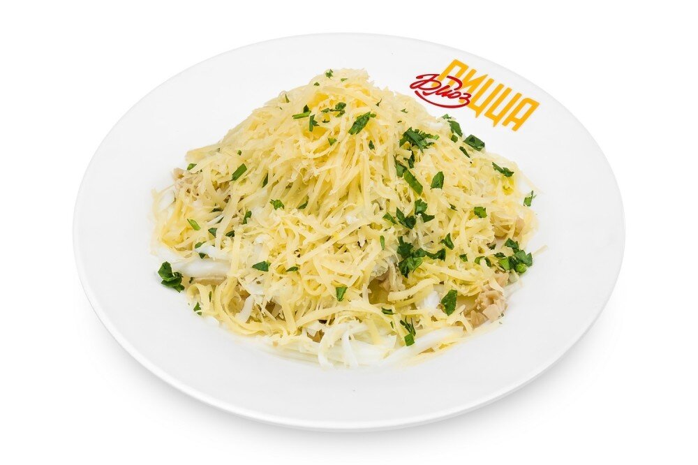 Филец ыпленка, грибы, лук марин., яйцо, сыр, майонез