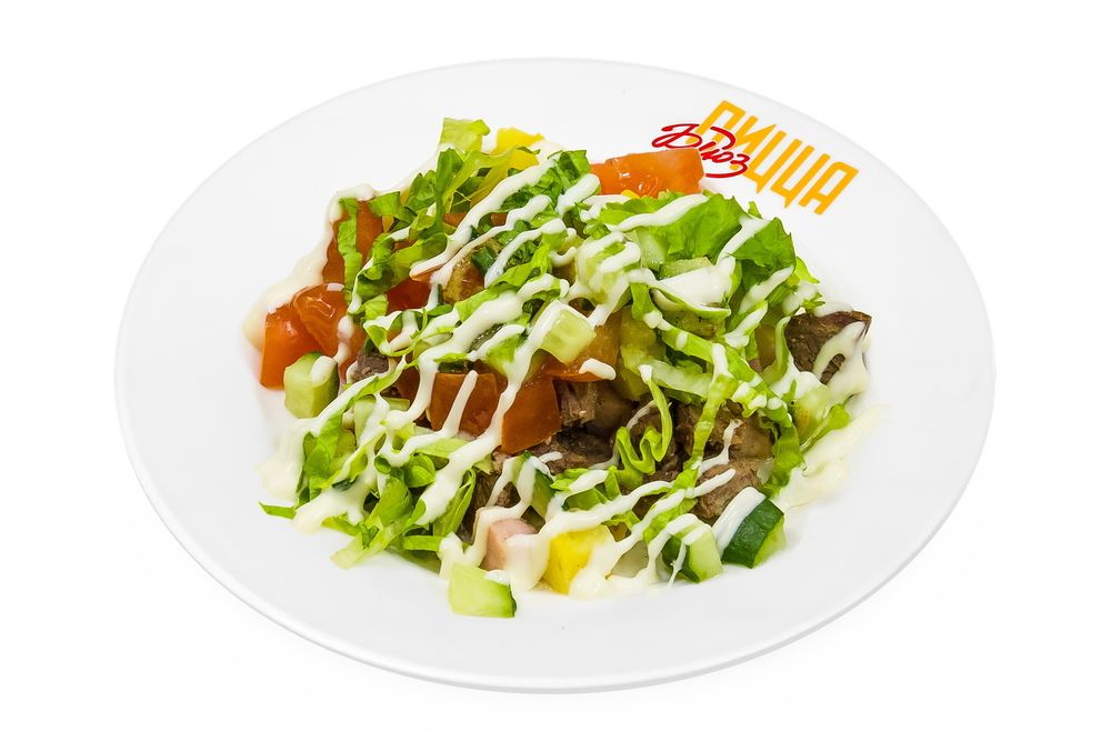 Говядина, ветчина, картофель, огурцы, помидоры, лист салата, масло, горчица, майонез