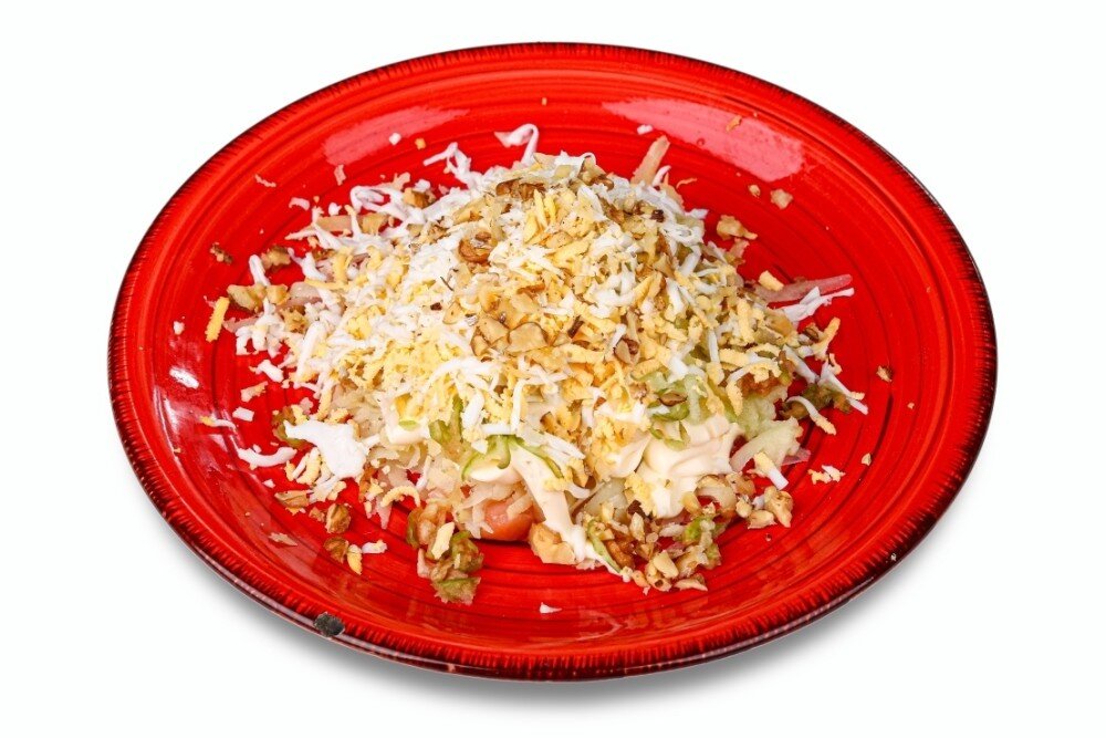 форель, картофель, яйцо, яблоко, грецкий орех, майонез