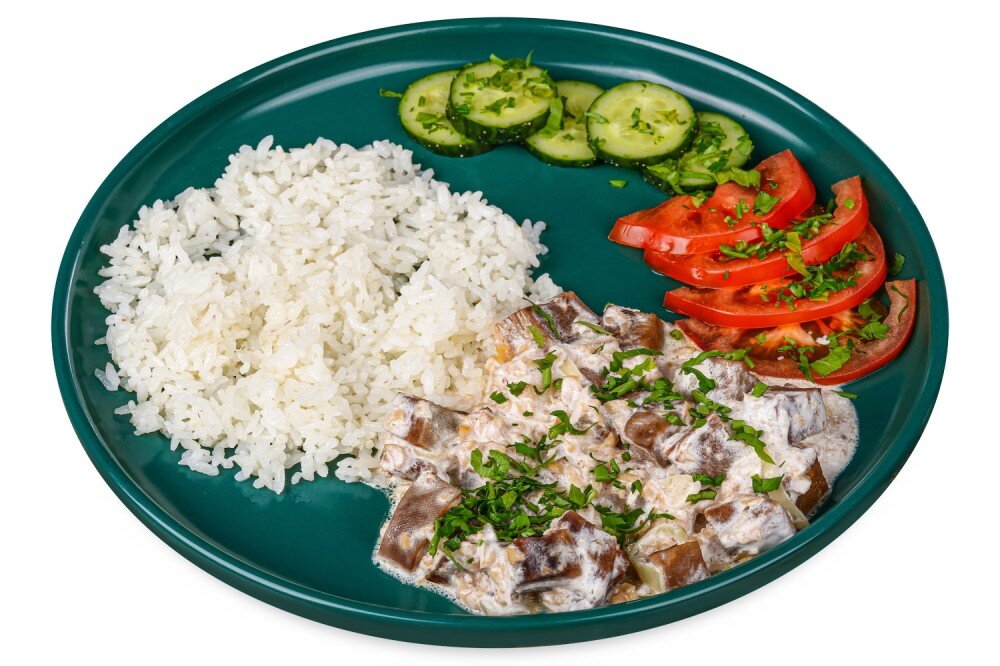 Грибы, лук, грецкий орех, сметана, чеснок, подгарнировка, гарнир