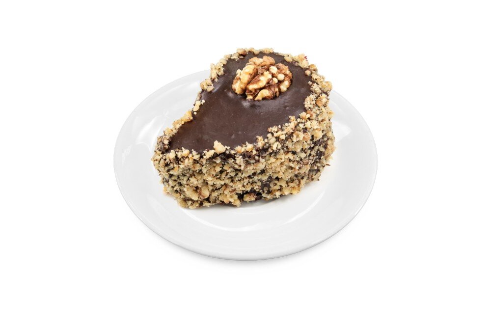 Шоколадный бисквит, шоколадный сироп, шоколадная паста, грецкий орех
