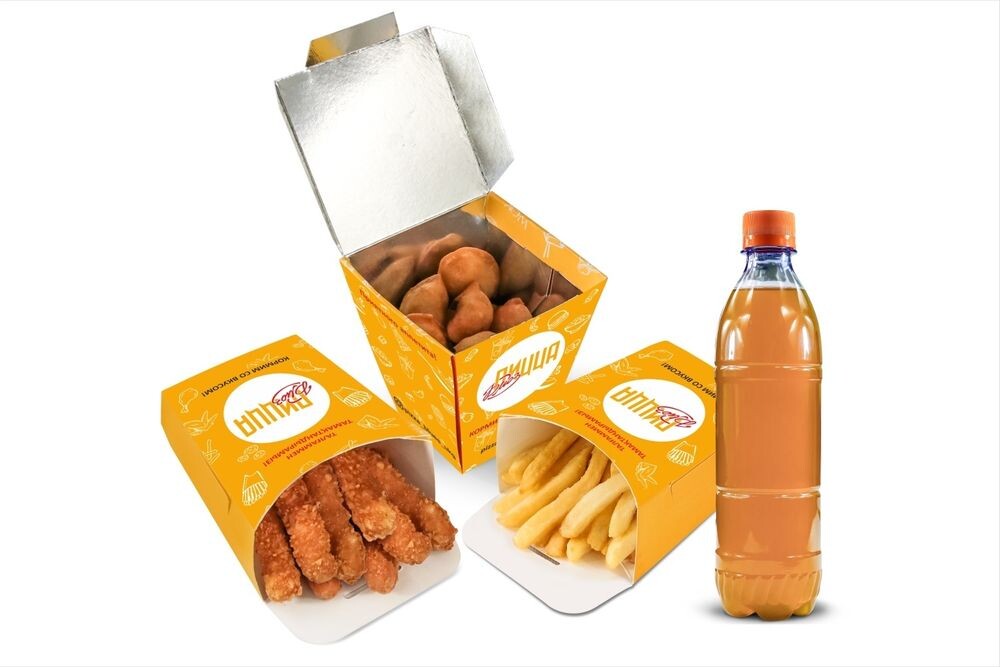 Чебуречки, куриные стрипсы, картофель фри, компот 0,5 л