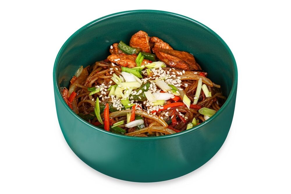 болгарский перец, лук, морковь, соус "чили-терияки", зеленый лук, кунжут