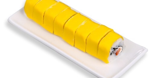 Семга, огурцы, сыр сливочный, соус унаги, кунжут