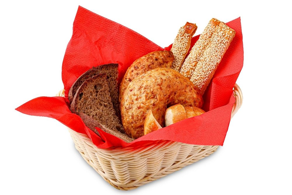 Хлеб ржано-пшеничный и черный, булочка, хлебные палочки с кунжутом
