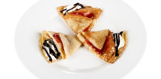Блинчики с повидлом и взбитыми сливками