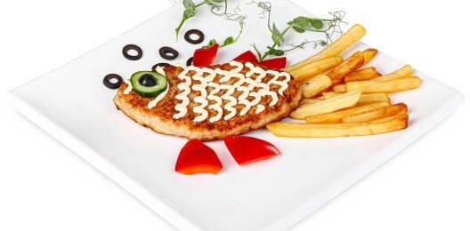 куриная котлета, сыр чеддер, огурцы маринованные и свежие, помидоры, маслины, кетчуп, майонез, картофель фри