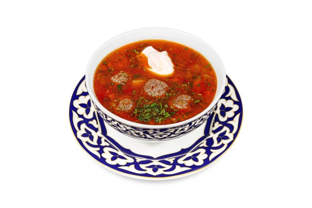 традиционный таджикский суп с овощами и рисом на бараньем бульоне с фрикадельками