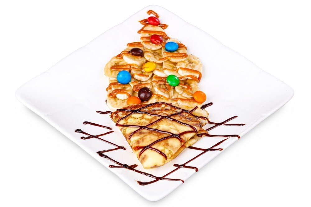 бананы, взбитые сливки, шоколад, М&м's, сгущенное молоко