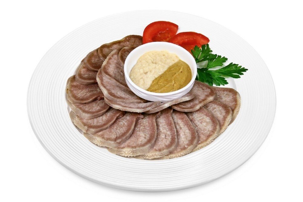 Закуска из языка с хреном и горчицей