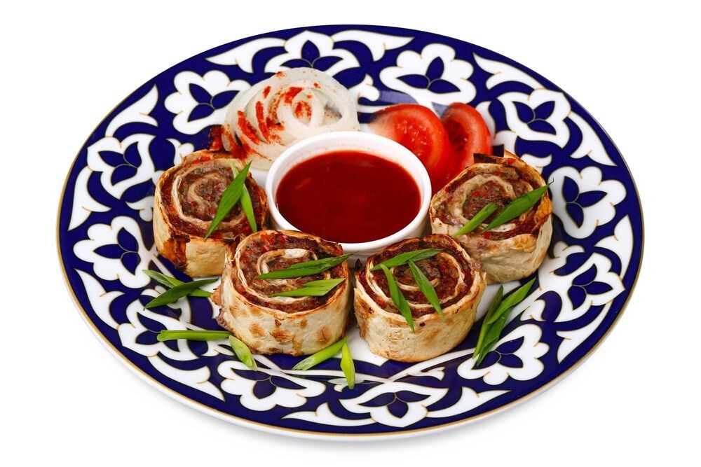 блюдо турецкой кухни из бараньего фарша с луком, болгарским перцем и специями, запеченного в лаваше, подается с маринованным луком, помидорами и шашлычным соусом