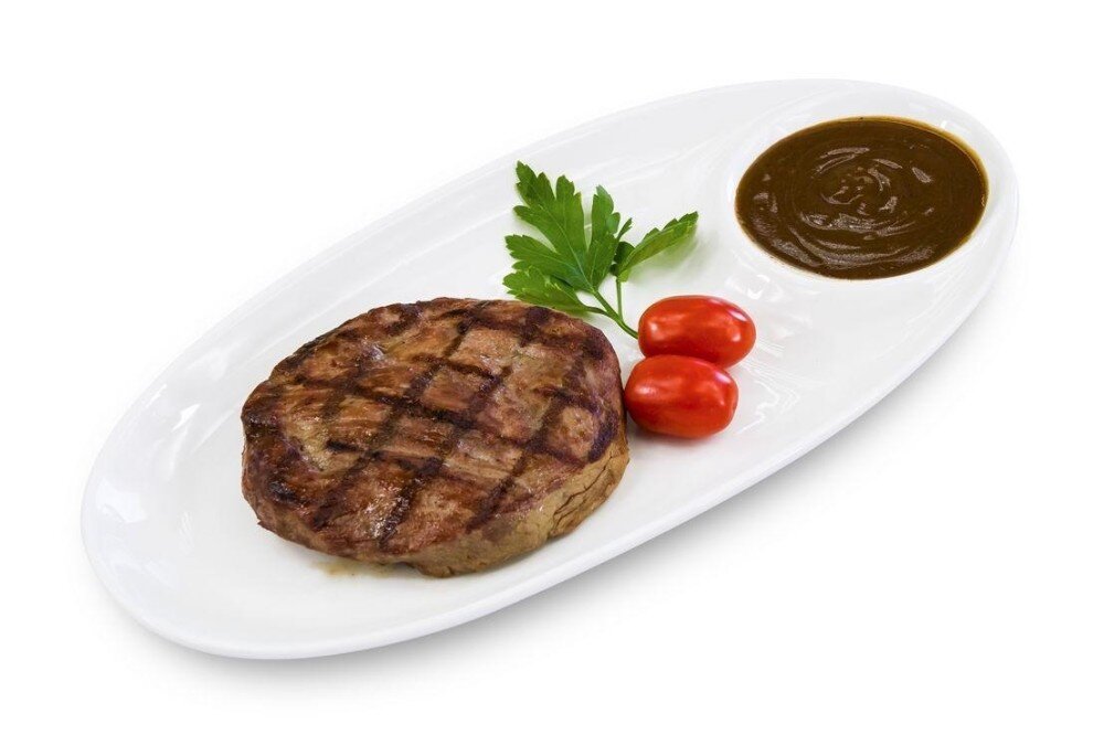 отбитый и обжаренный стейк из говяжьей вырезки с соусом Red wine