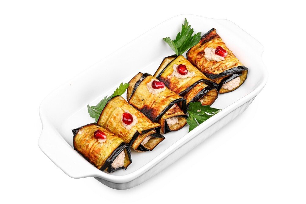 рулетики из баклажан с чесночно-ореховой начинкой