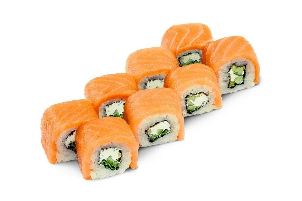семга, сливочный сыр, огурцы, зеленый лук, листья нори, рис (8 шт)