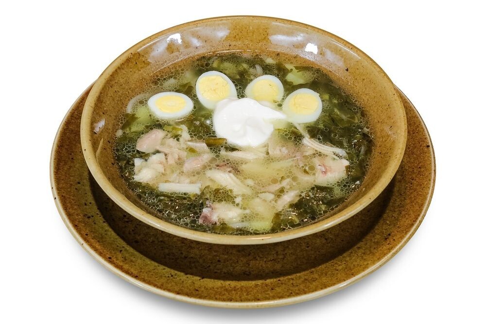 Из курицы, с щавелем. лучком и картофелем, подаются со сметаной