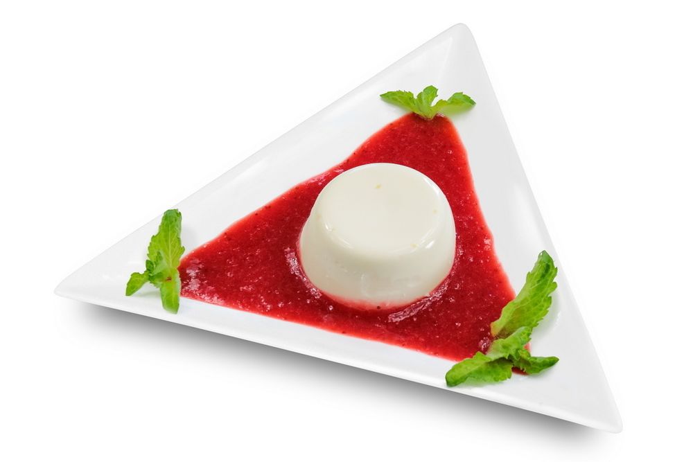 Итальянский сливочный десерт с клубничным соусом и мятой